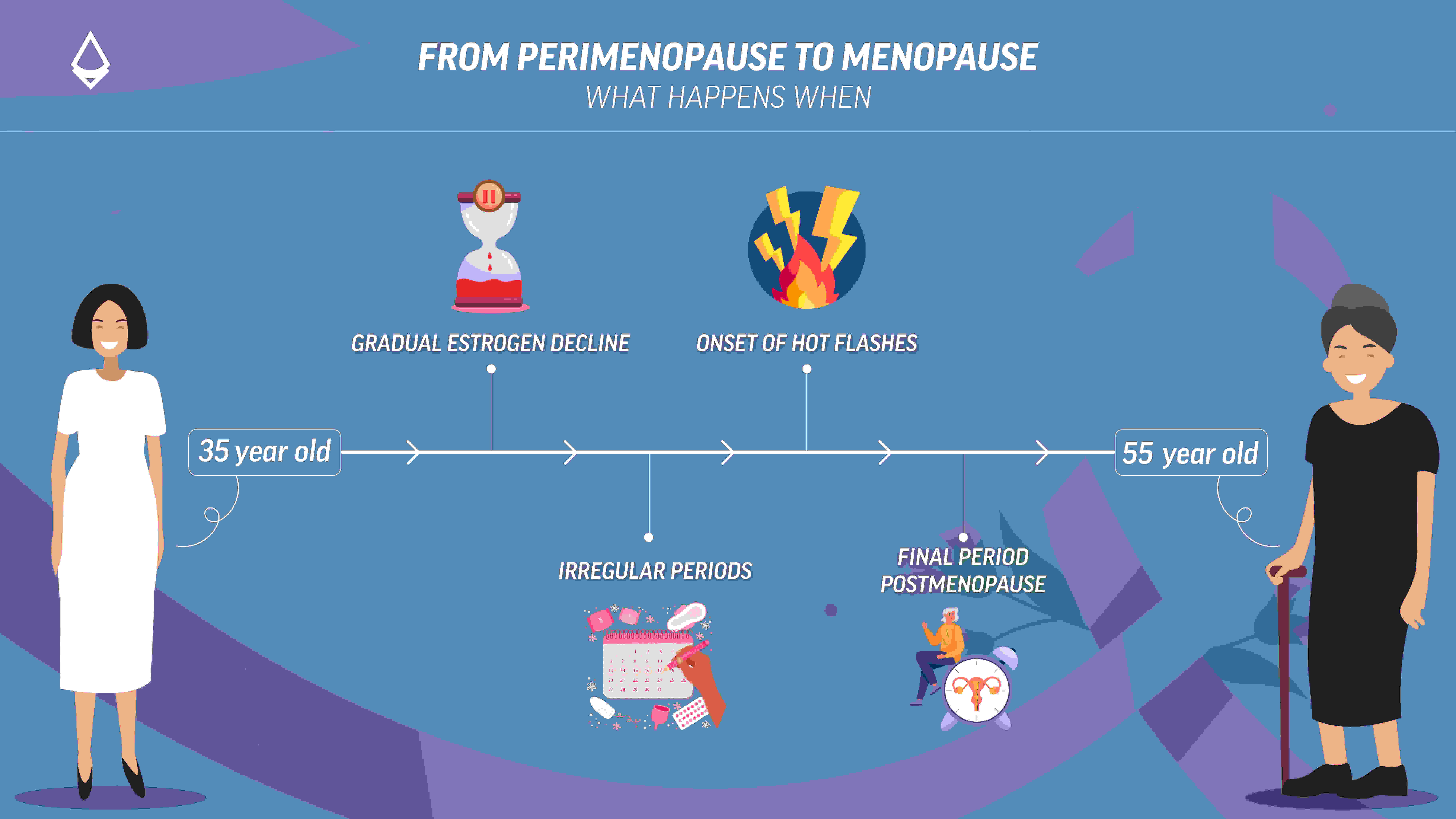 Menopause officially begins when a woman hasn’t had a period for 12 consecutive months. The average age for this is around 50, but it can vary from 45 to 55. The ovaries stop releasing eggs and estrogen levels stabilise at a lower level. After this point, one is said to be postmenopausal.