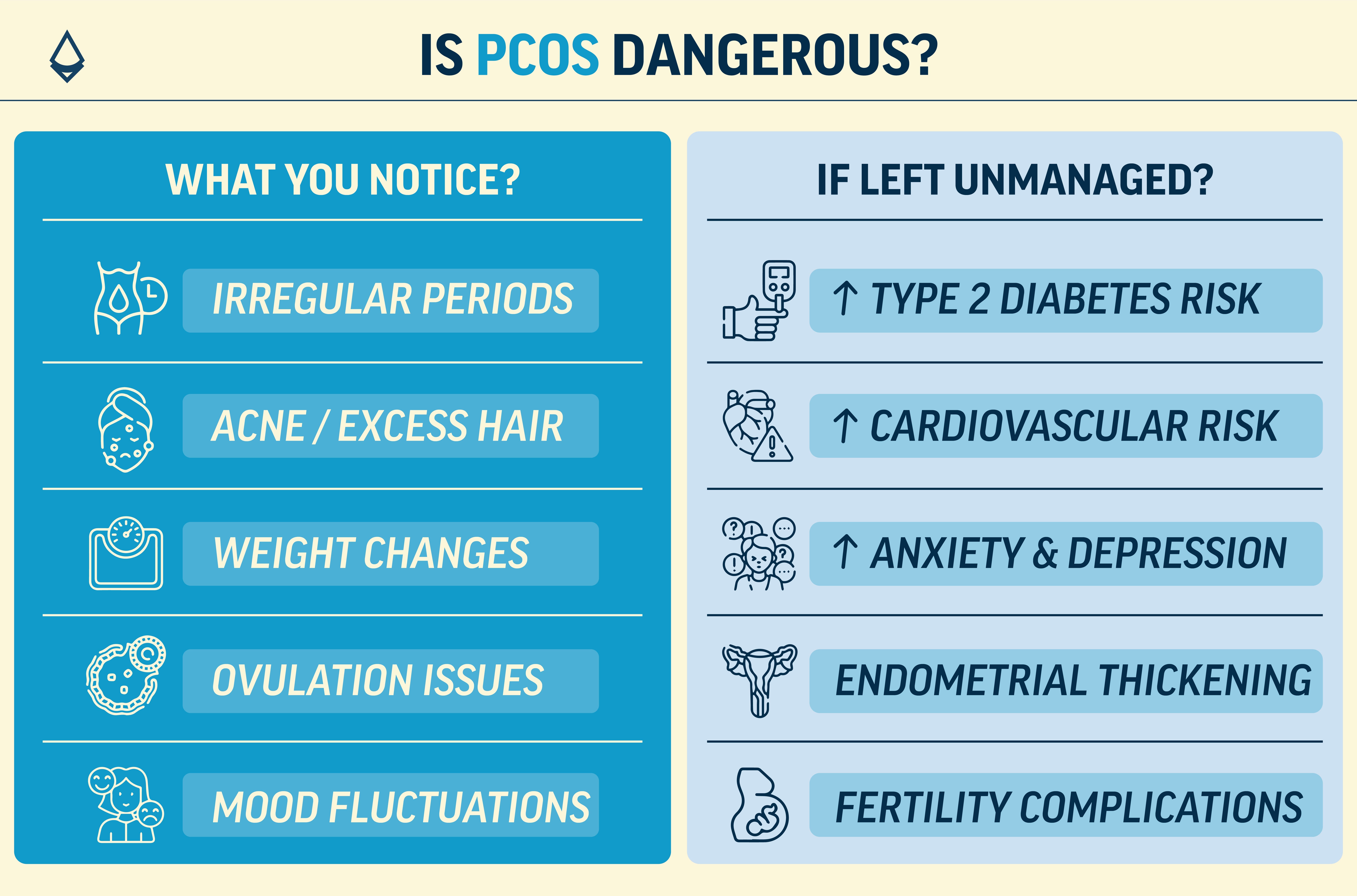 So, is PCOS dangerous? The answer is - PCOS is not immediately life-threatening, but it is a metabolic warning sign. When ignored, it can increase the risk of serious long-term conditions. When recognised early and managed consistently, most of these risks can be significantly reduced.